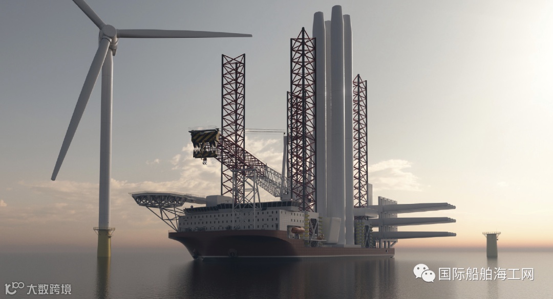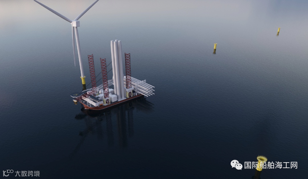 丹麦设计公司Knud E. Hansenlka 开放推出了全新“Atlas A”级自升式海上风电安装船设计方案,可搭载4台新一代14兆瓦的风力涡轮机,这款风电安装船主打“大型海上风机安装的性价比”方案。