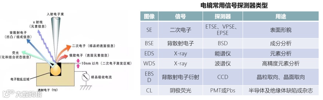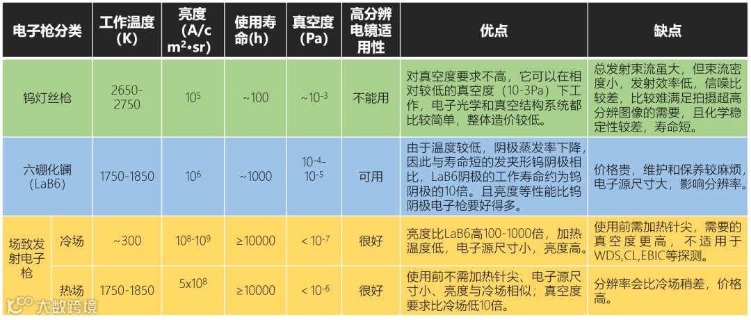 电镜是集成度很高的精密仪器,由多个系统组成。其中,电子光学系统是电镜的“神经”,决定了电镜的核心性能。再具体来看,电子光学系统又包括电子枪、电磁透镜、扫描线圈、样品室等部分。根据电子枪的材质和形状,电镜可分钨灯丝、六硼化镧和场发射三种类型。场发射电子枪相比于钨灯丝、六硼化镧,具有电子束斑小、高分辨率、稳定性好、使用寿命长等特点,因此场发射电镜属于高端产品。国内企业的产品主要还是钨灯丝电子枪,属于低端电镜产品。