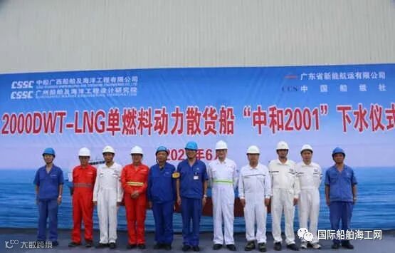 2021年6月25日下午3时许,“绿色珠江”工程首批50艘LNG单一燃料动力2000吨级首制船“中和2001”号,在中国船舶集团广西公司钦州基地顺利下水。