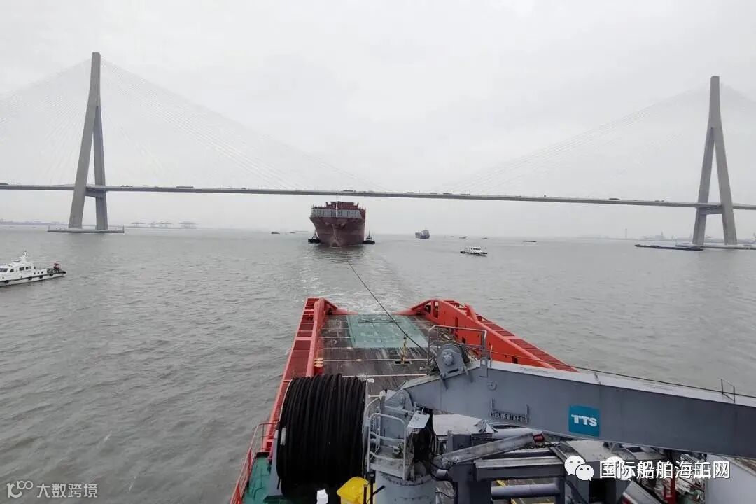 ▲从太仓扬子三井码头到新扬子造船码头拖航作业(视频制作:泰州海事局)