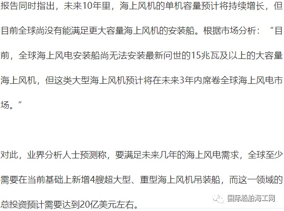 根据市场研究机构一份总结报告,海上风机技术持续发展革新,不仅本身尺寸不断增加,单机发电容量也在不断增长,然而,配套行业并未同步发展,全球船舶业的发展现状目前尚无法达到要求。
