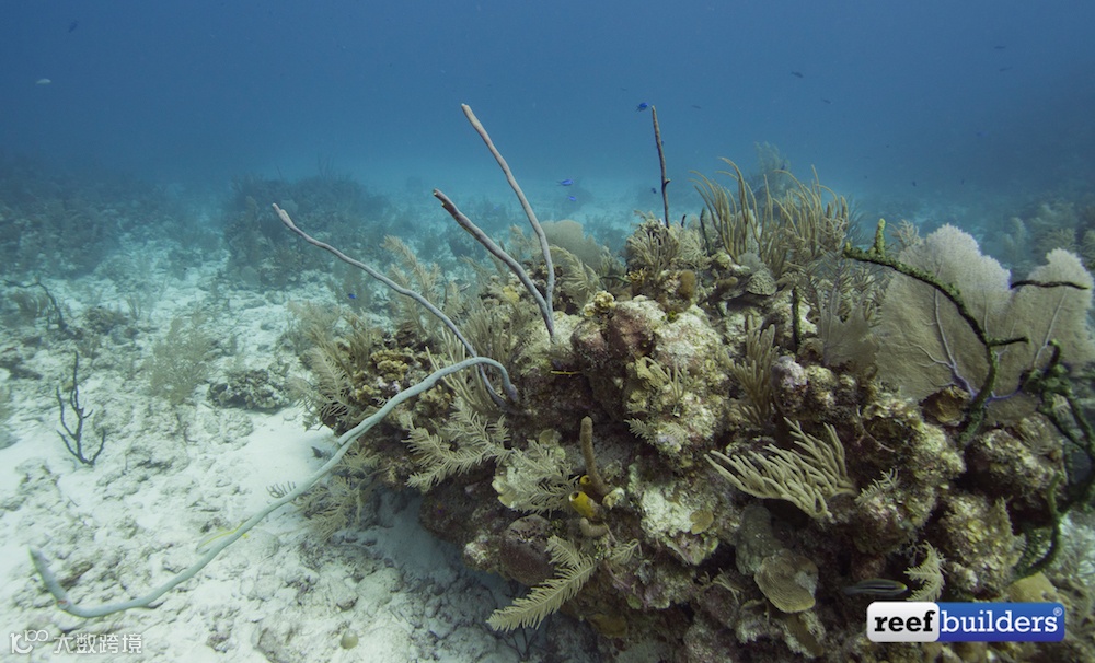 图为被环状珊瑚、沟珊瑚、海扇和柳珊瑚覆盖的岩石