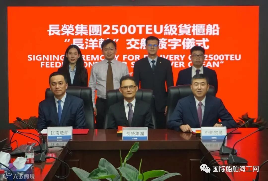 4 月 26 日,中国船舶集团旗下江南造船为长荣海运建造的第二艘装脱硫洗涤塔的2500箱支线箱船“ EVER OCEAN ”签字交付。这也是今年公司交付的第5艘船舶。