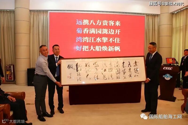 广船国际公司办公室(党委办公室)副主任郑学春书法题写船名藏头诗作为送给该船的纪念品