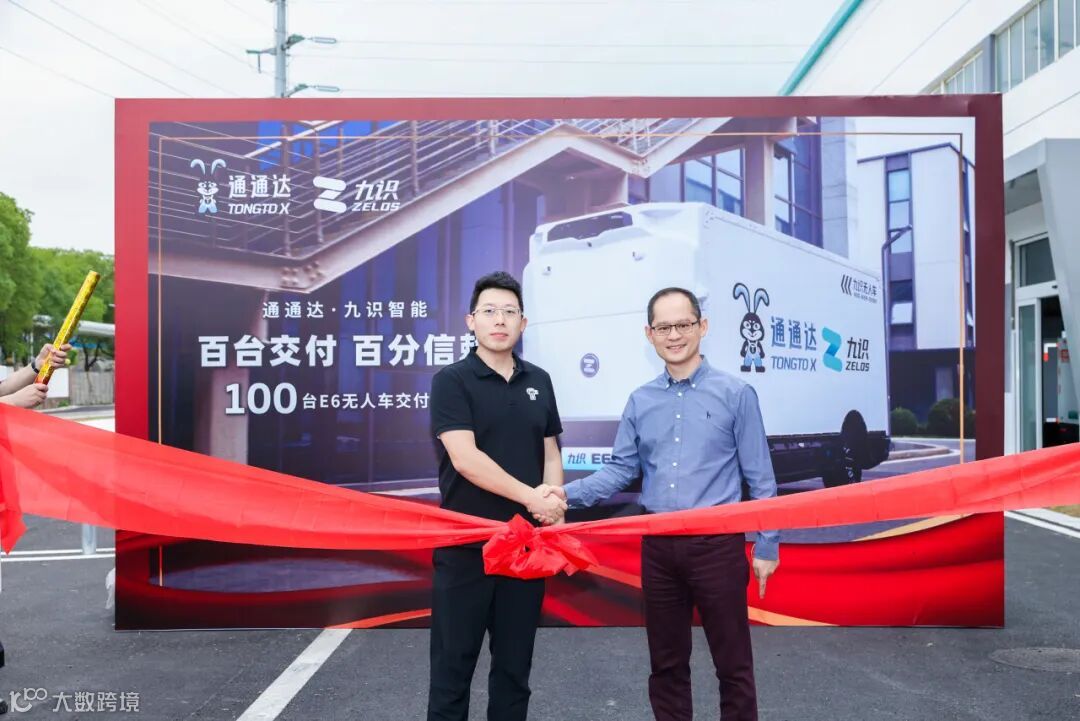 交付仪式上,九识智能销售副总裁陈雷与通通达执行总裁郝彬彬共同出席,见证了双方合作历程中的这一重要节点。