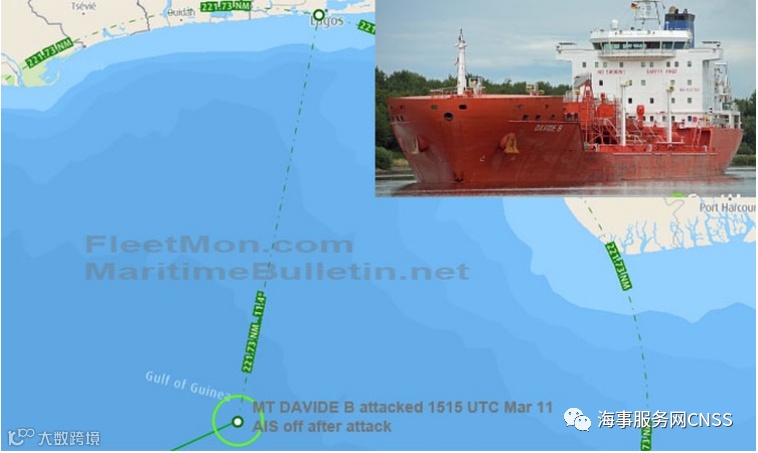 事件发生在3月11日,当时化学品油轮“DAVIDEB”正从拉脱维亚里加到尼日利亚拉各斯执行航行任务,在航行至西非贝宁科托努以南约210海里处航行时,遭到9名武装海盗人员的攻击,海盗分子绑架了15名船员。