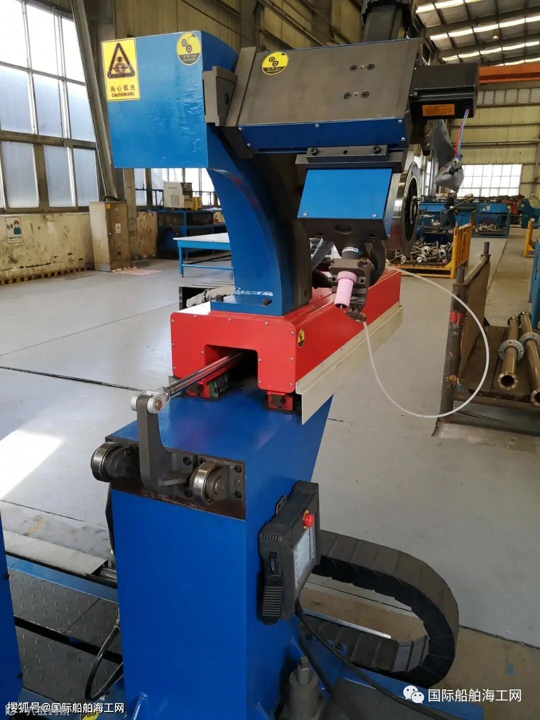 中国船舶集团属下黄埔文冲公司,与设计院所、焊接设备厂家联合开展合作、研究,于近期推出一款适合船用镍铜管焊接的自动焊机,并在该司在建科考船实船应用,效果良好。