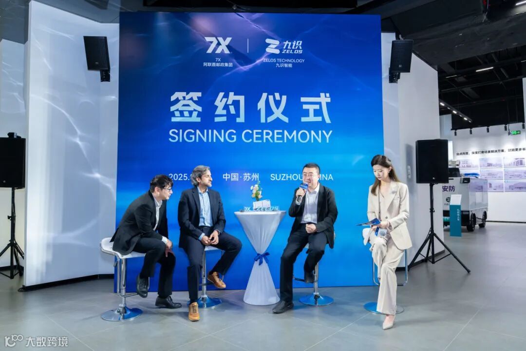 2025年5月15日,中国苏州——九识智能与阿联酋国家邮政集团(Emirates Post Group Company,简称"阿联酋邮政")正式签署合资协议。园区党工委副书记、管委会副主任刘华出席。九识智能首席执行官孔旗,阿联酋邮政集团首席执行官Tariq Al Wahedi、EMX总经理Laith Tahboub,以及运营优化总监Neil Peters共同出席签约仪式。