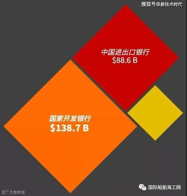 从贷款方来看,国家开发银行最多(1387亿美元),其次是进出口银行(886亿美元),还有两家银行的联合融资(240亿美元)。