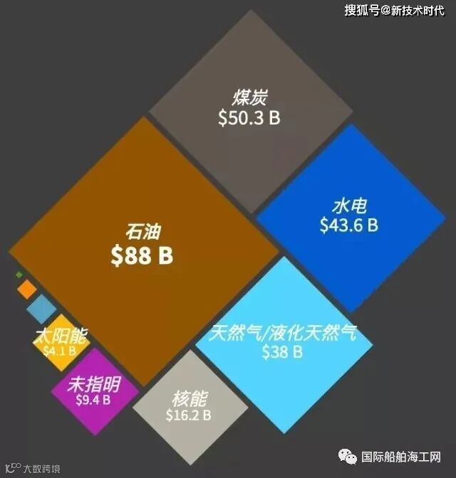 从能源类型来看,中国在海外的石油投资最多(880亿美元),其次是煤炭(503亿美元)、水电(436亿美元)、天然气(380亿美元)、核能(162亿美元)、太阳能(41亿美元);还有94亿美元的投资类型未明确指明。