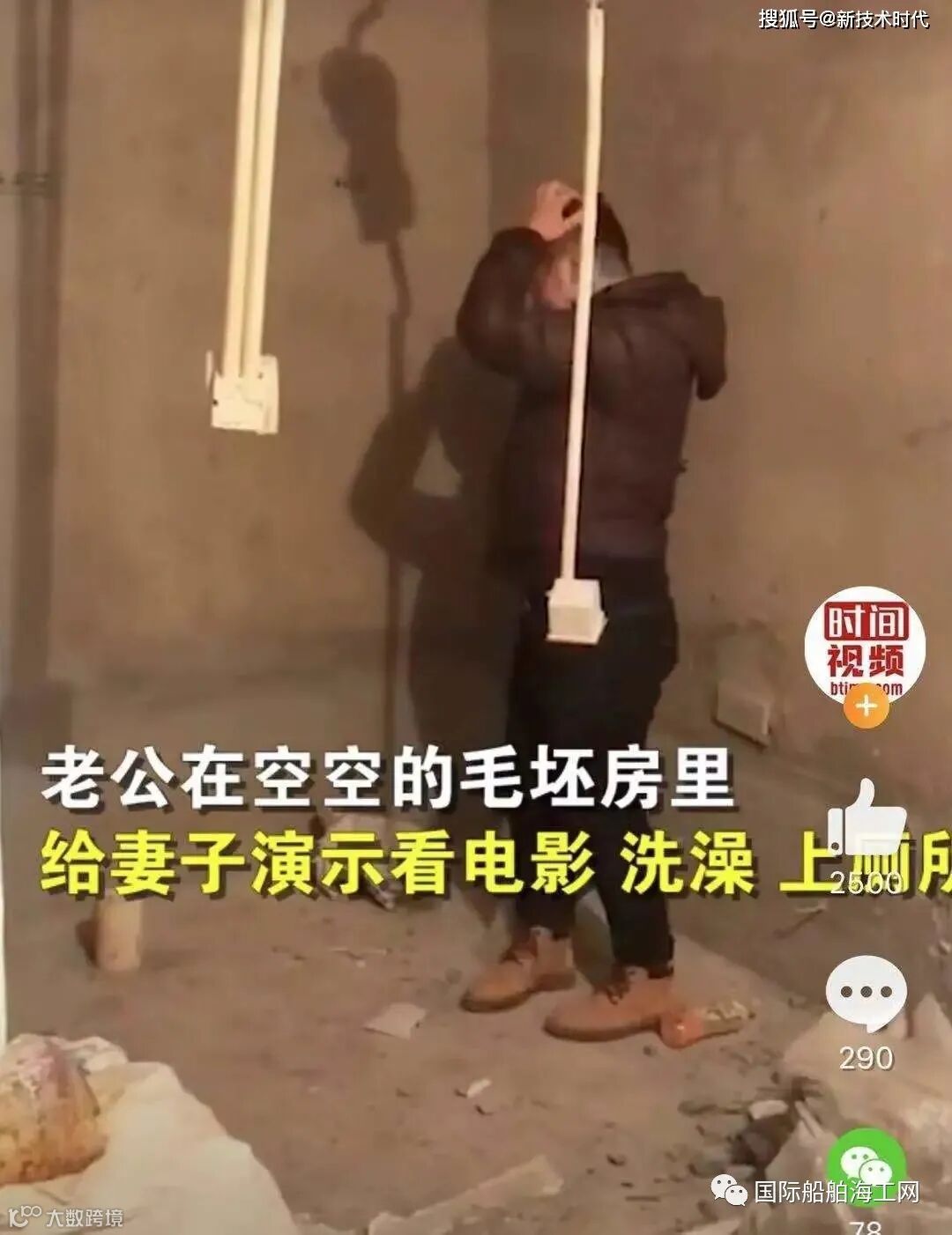 丈夫在毛坯房演示洗澡