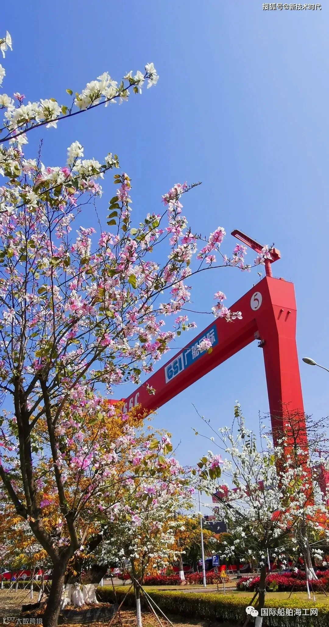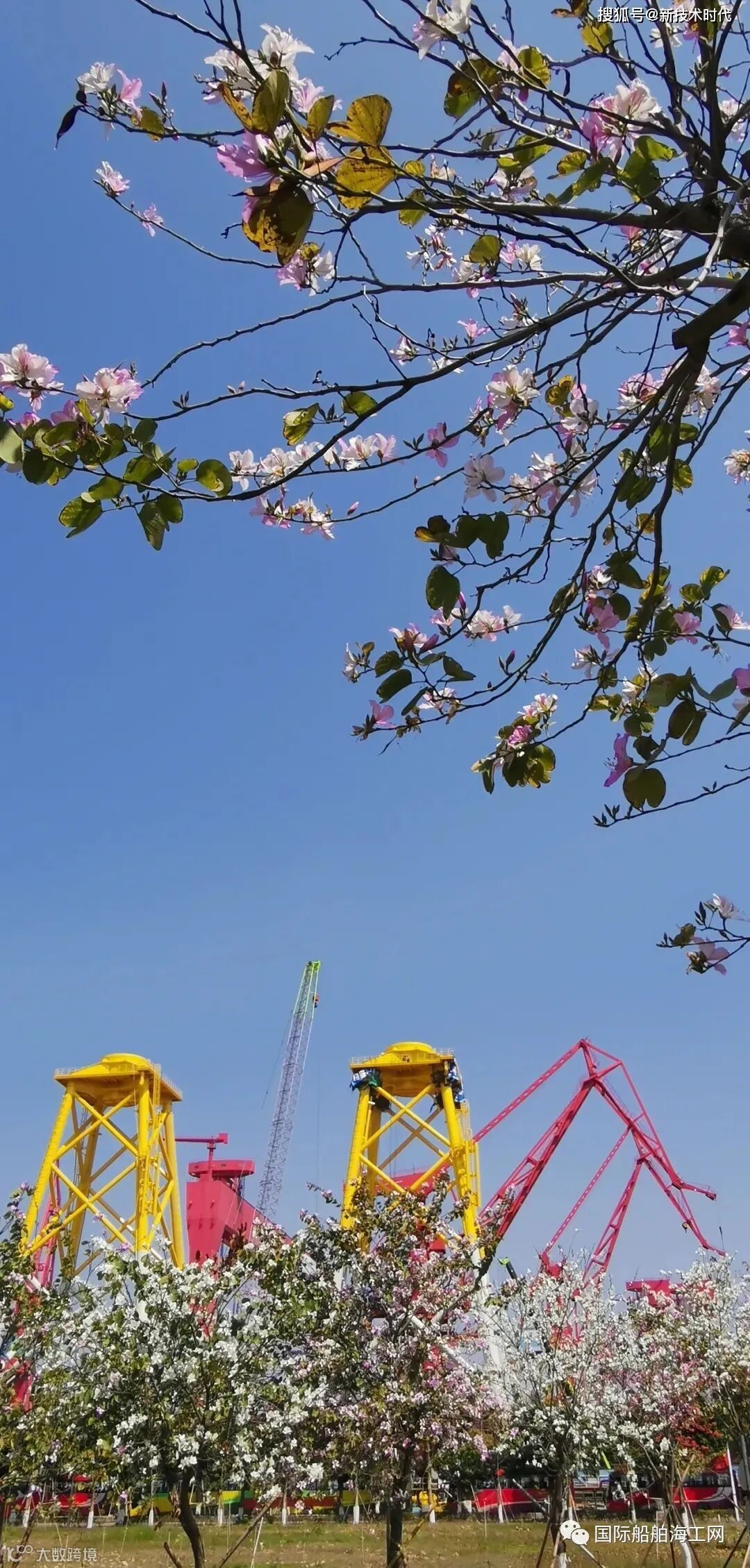 洋紫荆把龙门吊装点得格外好看,洋紫荆被喻为“穷人的兰花”,这也象征着人们对美好生活的向往。幸福是奋斗出来的,让我们向着美好的新征程出发。