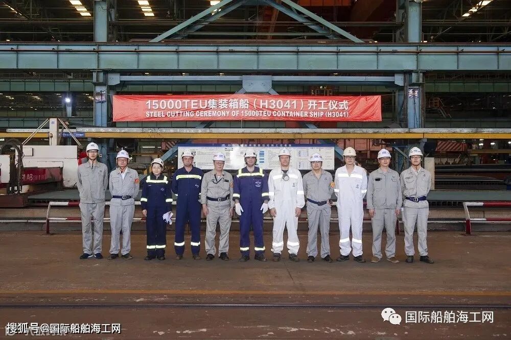9月9日上午,公司为达飞海运建造的第四艘15000TEU集装箱船H3041开工仪式在制造二部举行。船东驻厂经理Goran Talevski、BV驻厂验船师、沪东中华总经理助理翁红兵和长兴造船生产总监鲍文斌等参加仪式。