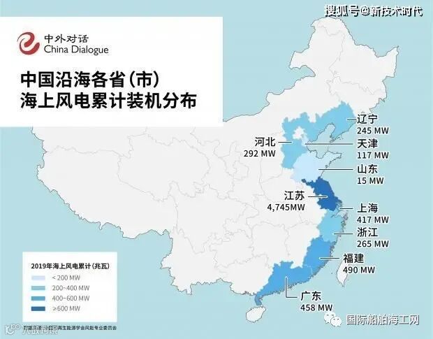 中外对话近日发布了中国海上风电发展迅猛的报道,比较好地总结了国内海上风电产业突飞猛进,还发布了如下最新国内海上风电安装分布图。眼尖的可能会发现,该亮相图怎么会漏了3个海洋大省,广西、海南和台湾?因为这三个3个海洋大省目前海上风电产业正在起步,台湾省发展相对不错,但数据不全。他们当前的发展现状和潜力也将会同国内外其他地方的发展动态和机会,在2020年11月10日-11日将在上海市中心举办“2020年海上风电产业创新发展上海国际峰会”上交流探讨。
