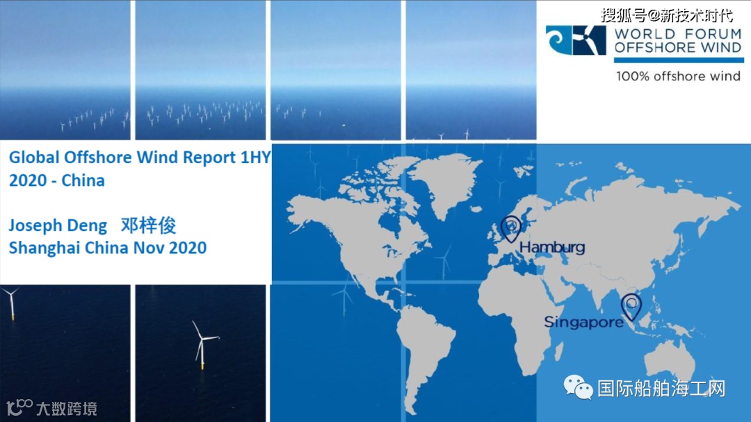 专程从英国飞来中国、刚刚顺利完成隔离检查的WFO全球漂浮式风电论坛协会的Joseph Deng (邓梓俊)先生将演讲分享《全球海上风电发展报告和中外合作 ,Global Offshore Wind Report 1H 2020-china》,他将演讲的PPT首页如下。