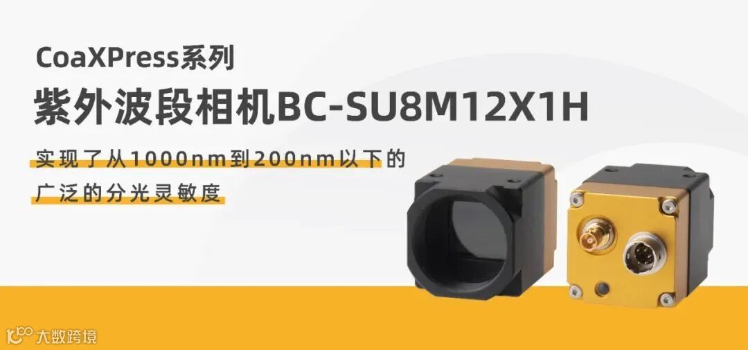 博视像元近日推出一款高速、高灵敏度的紫外波段相机 — BC-SU8M12X1H。该相机搭载了采用背面照射型技术(BSI)的新型Sony Pregius S传感器,在200nm波段处的光谱响应效率超过了25%。该相机具有最大800万的分辨率,像素尺寸2.74um,实现从1000nm到200nm以下的广泛的分光灵敏度,确保无失真的成像和高速性能。