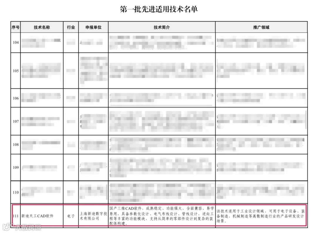 新迪天工CAD入选工信部第一批先进适用技术名单