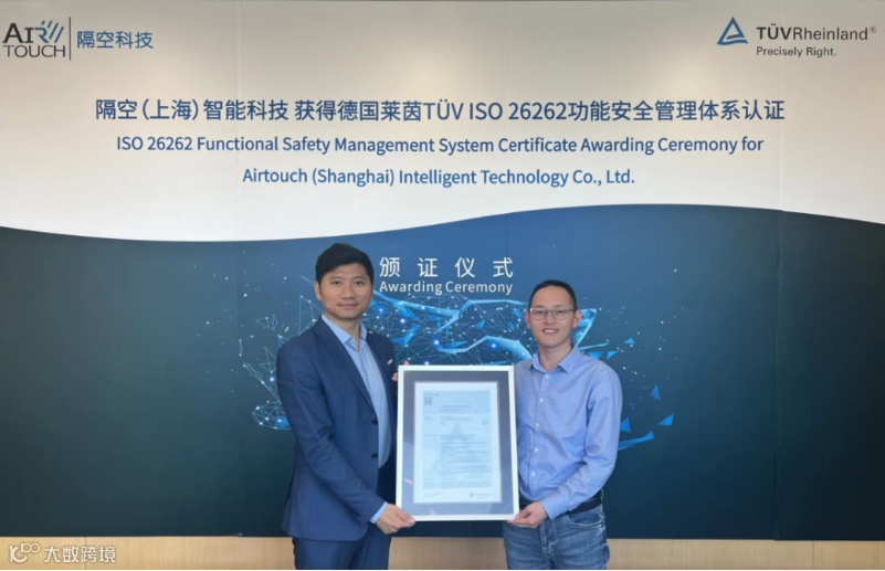 隔空科技获德国莱茵TÜV ISO 26262 功能安全管理体系认证证书