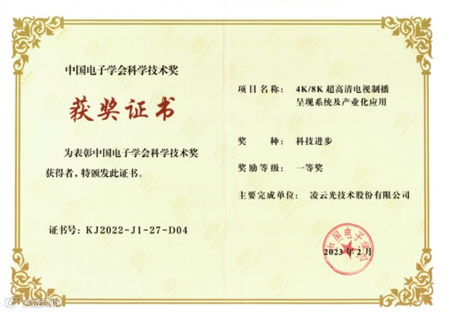 近日,中国电子学会公布2022年中国电子学会科学技术奖名单,凌云光与中央广播电视总台以及九家公司共同完成的项目“4K/8K超高清电视制播呈现系统及产业化应用”荣获2022中国电子学会科技进步一等奖。项目面向超高清领域的科技前沿问题,聚焦4K/8K超高清电视关键技术,成功支撑了建党百年、国庆70周年和春晚等重大主题报道和大型活动宣传,尤其在北京冬奥会上,完美实现了“科技冬奥8K看奥运”目标。