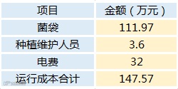 e)成本核算:菌袋按照成品购买,价格为2元/个;大棚维护人员,年工资为3.6万元,电费为年32万元。