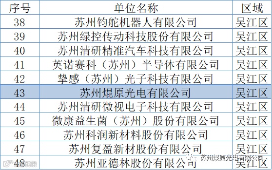 7月6日,苏州市科学技术局正式公布了2021年度苏州市“独角兽”培育名单,苏州焜原光电有限公司成功入榜,成为吴江区入选的11家企业之一。