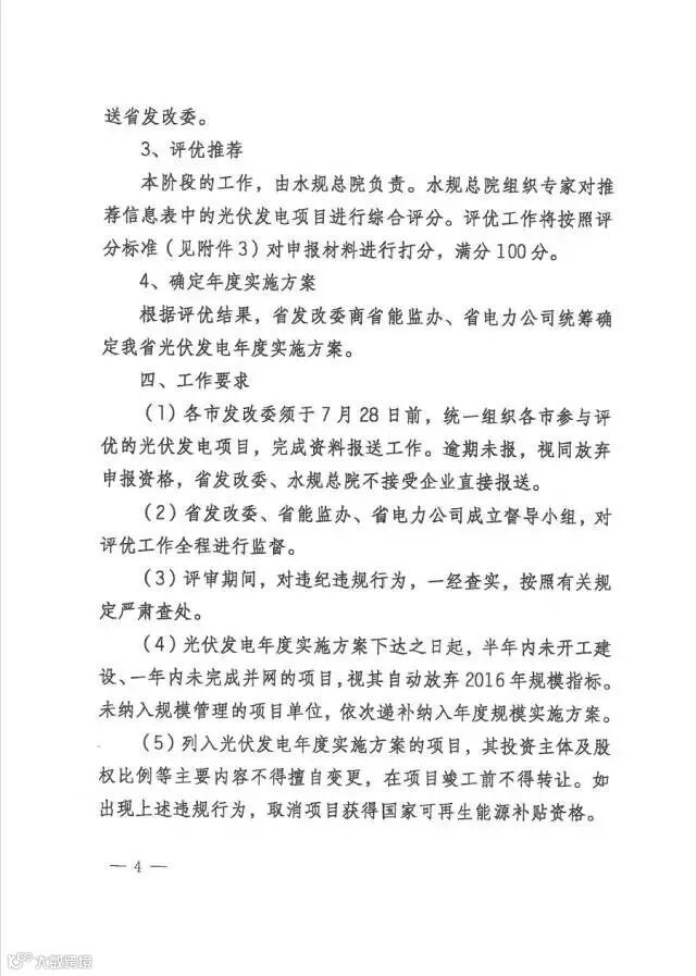 另外,通知格外指出,光伏发电年度实施方案下达之日起,半年内未开工建设、一年内未完成并网的项目,视其自动放弃2016年规模指标。未纳入规模管理的项目单位,依次递补纳入年度规模实施方案。