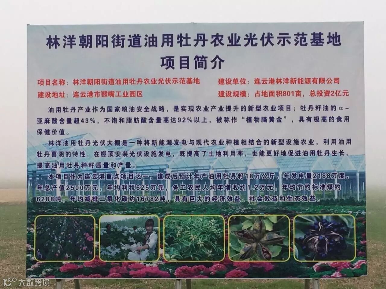 今年初,国家能源局发布的《关于加快贫困地区能源开发建设推进脱贫攻坚的实施意见》明确提出,“鼓励光伏发电与种植、养殖业结合,充分利用荒山、荒坡、鱼塘、大棚等农业设施,增加贫困人口收入。”林洋能源积极响应国家政策,提出在连云港地区建设的分布式光伏电站将采用”一地多用,农光互补“的模式,通过建设高效农业光伏大棚,在棚下种植油用牡丹、食用菌等极具经济附加值的农作物,从而实现“棚下种植、棚顶发电”的高端农业与清洁能源的有机结合。