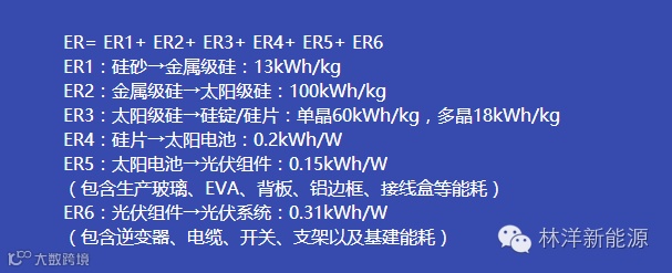 能量回收期TP=光伏系统生产全产业连各个环节所需能量ER÷光伏系统年发电量EO