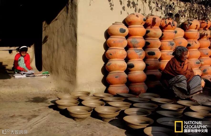 这张以陶罐为背景的照片拍摄于孟加拉国,这里三分之一的人用不上电。Corcoran写道:“陶罐组成的重复图案让我眼前一亮,但画面中的两个人才是最值得细细品味的地方。”