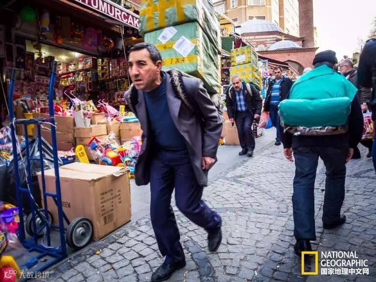 “我站在伊斯坦布尔香料市场附近的街上,看见人们正在用人力的方式搬运货物。右边的那个男人正朝着相反的方向前进,看起来不费吹灰之力。”Azul Adnan写道。