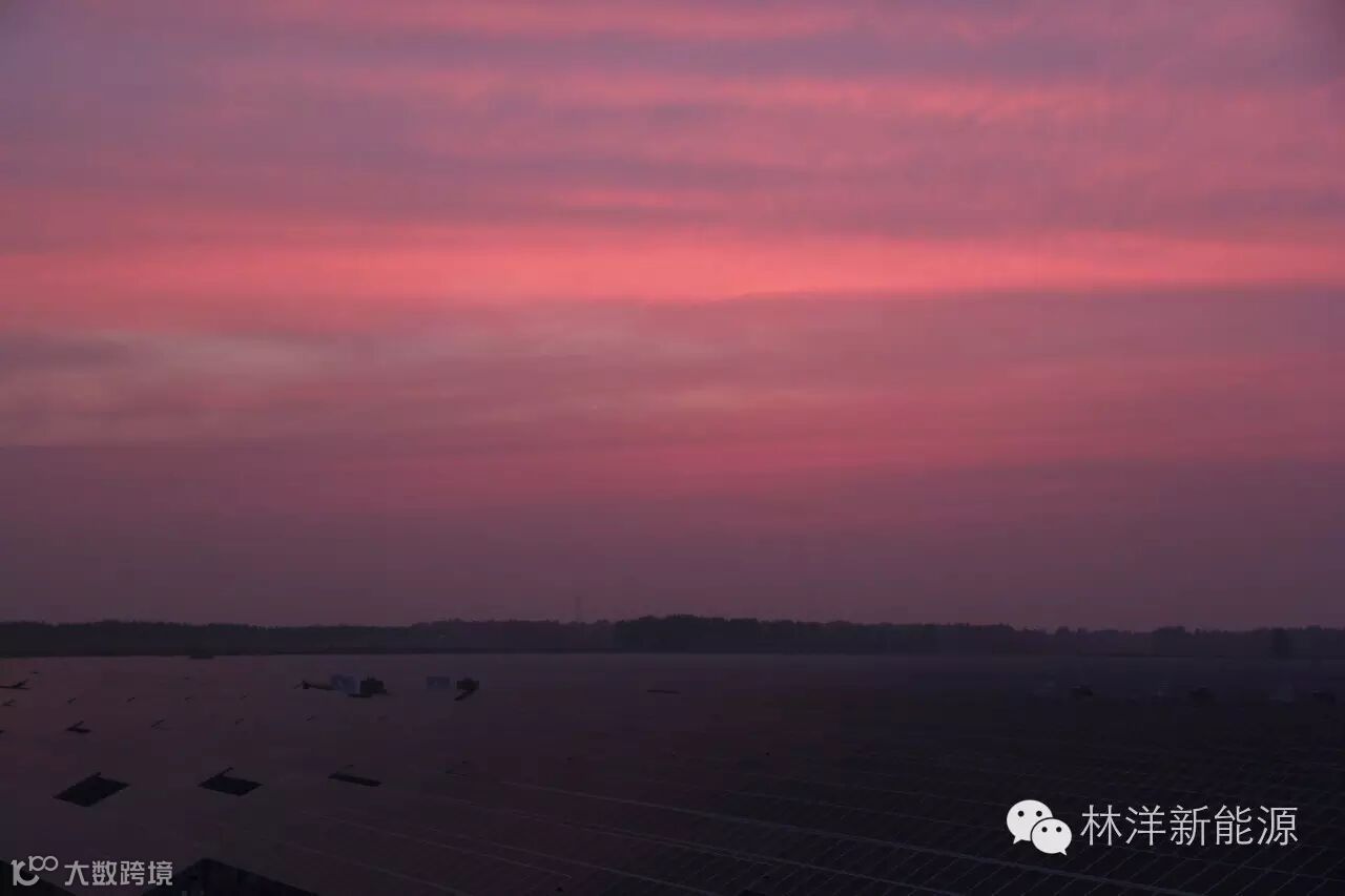 这一次,再次走进灵台湖,她用一种更加特别的方式呈现她的美,述说她的故事。驻足远望,视野中一片蓝盈盈的光伏组件与绚烂的晚霞、壮丽的皖北风光融为一体。这是安徽林洋新能源成立一年半后,并网投运的第十一座光伏电站,也是林洋新能源“一体六翼”的第三十八座光伏电站。如此的开发速度、建设速度、并网速度,将林洋精神、林洋优势发挥到了新的高度。
