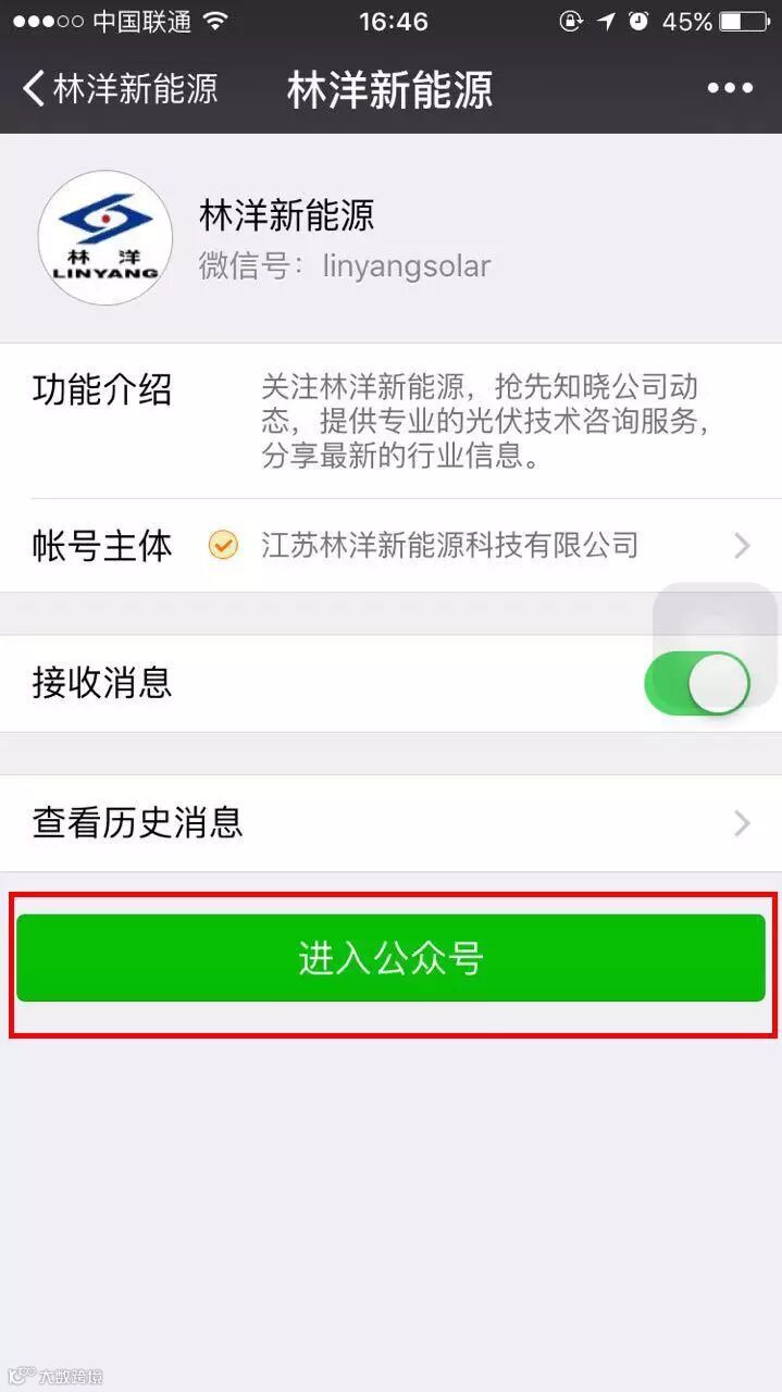 1、滑到文章标题最顶端,点击蓝字“林洋新能源”(红框标注部分);