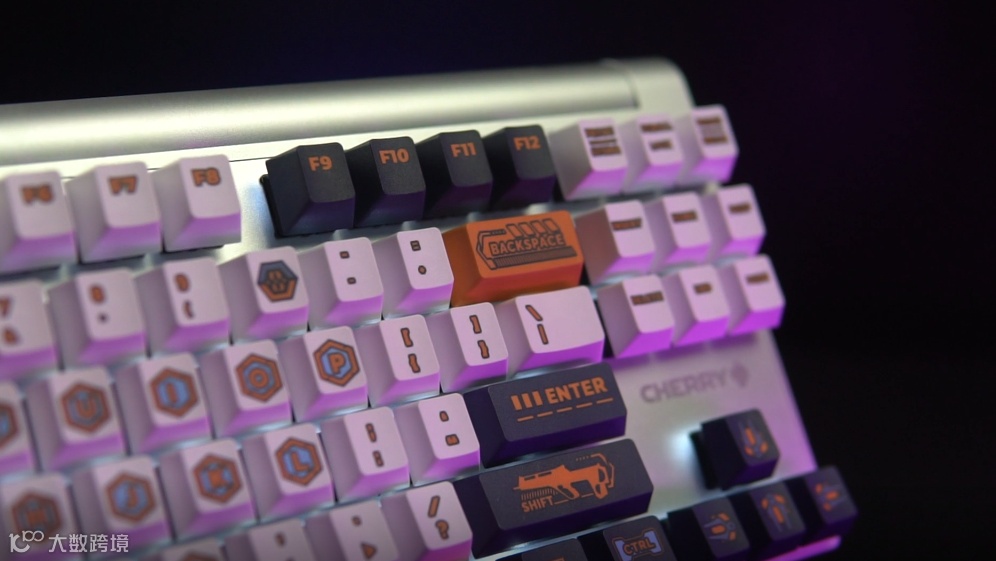 该键盘均采用了零号机的经典配色,搭配上主键区那极具辨识度的六边形图案字符,以及多功能按键上的特殊设计,再加上MX 8.0键盘的一体式铝合金机身,使它整体的机械感十足,非常符合零号机的特性。