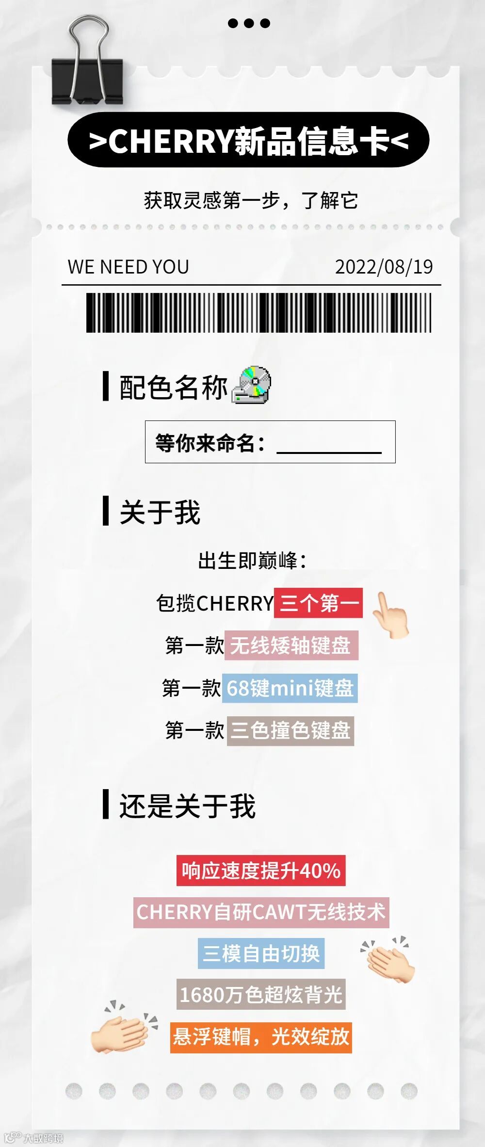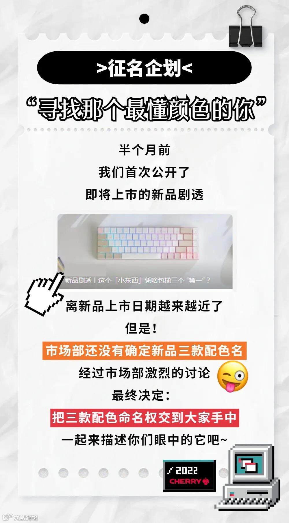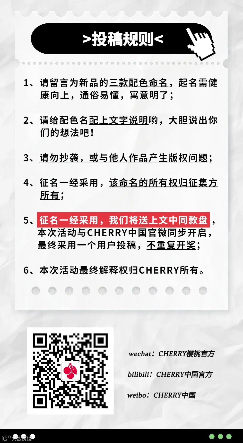 导读:CHERRY新品命名权已交至你的手中,快来为新品取名吧~