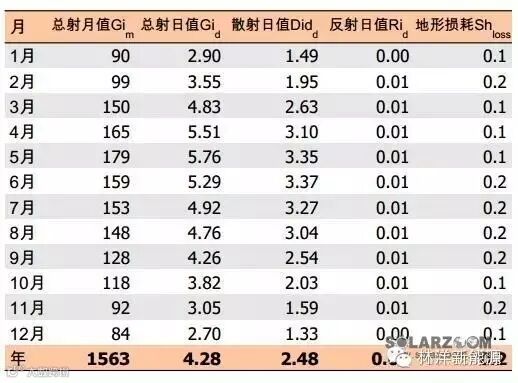 小时数*系统转化效率。根据这一公式来计算,可得到全年各月发电量如下表: