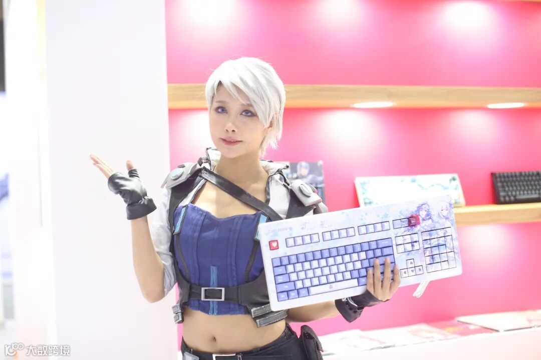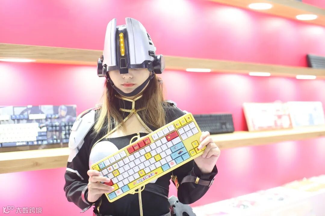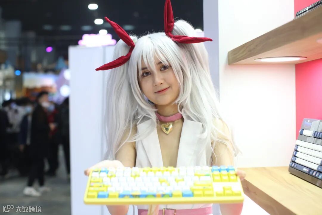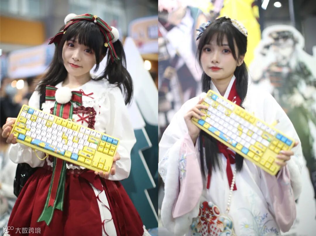 展会现场,CHERRY展位迎来了各位Coser的光顾,都纷纷与CHERRY的各款定制键盘合影留念~