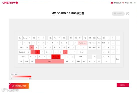 除游戏外,CHERRY助手平台还上线了键盘热力图功能,可以实时统计用户频繁敲击哪些键位,无论你是祖安王者、快乐风男,还是FPS身法大师,都可以在热力图里一览无余,右上角的积分猜一猜也可以让你每天都获得积分奖励用来兑换产品。