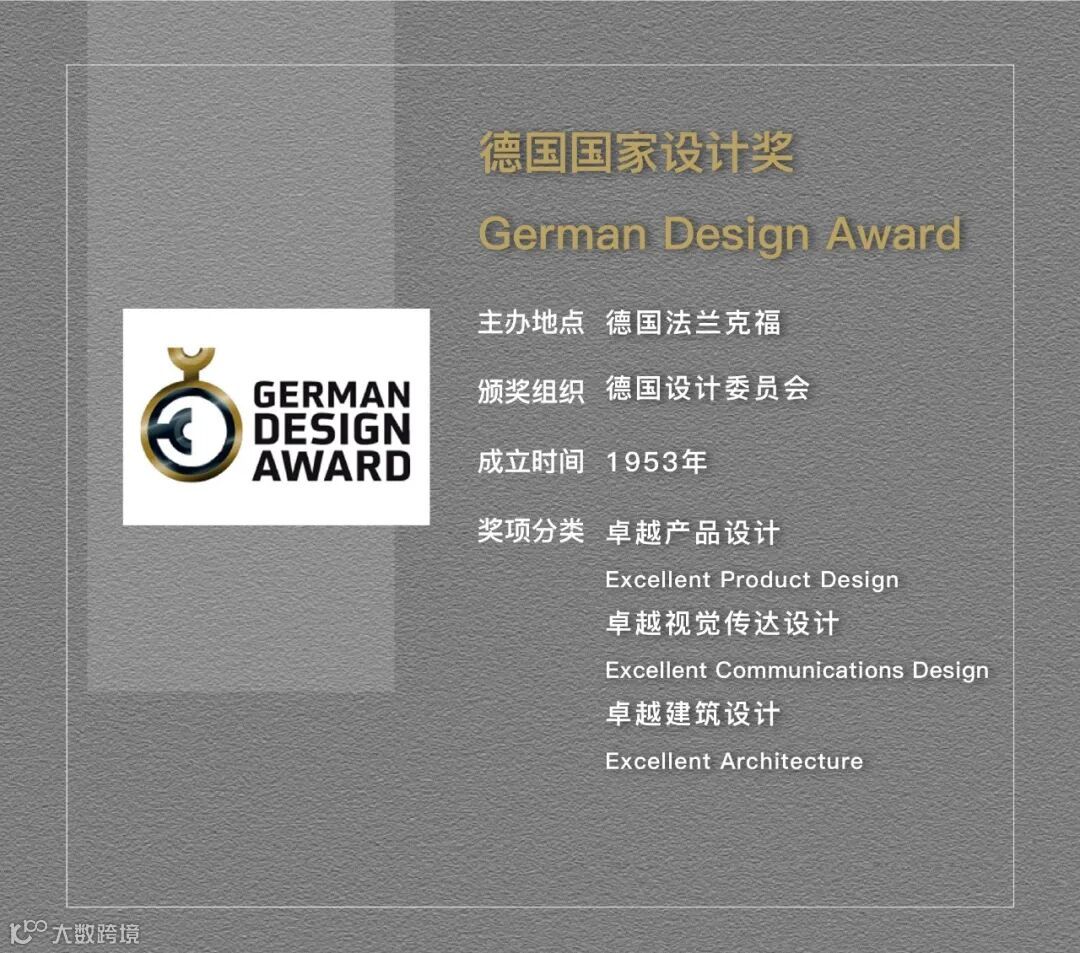 德国国家设计大奖(Germen Design Award)与德国Iconic Award标志性设计奖、德国iF设计奖(iF )、德国红点传达设计大奖(Red Dot Award Communication Design)为德国的四大设计奖项,全部名列在全球最有影响力的45个设计奖项之中。
