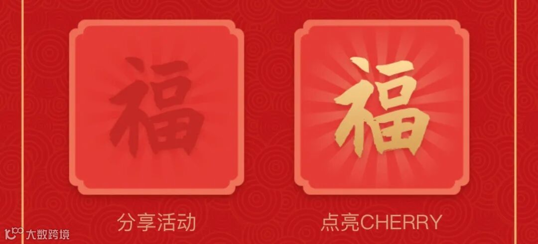 ②疯狂点击按键,点亮CHERRY字样,可点亮一个福字。