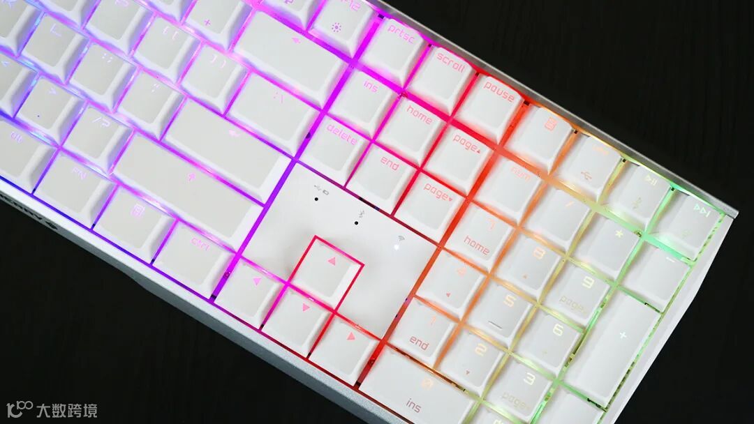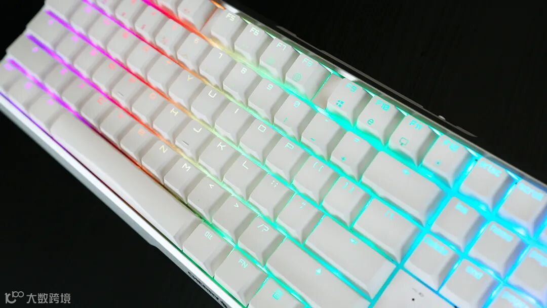 CHERRY MX 3.0S Wireless三模游戏机械键盘搭载了约1680万色的RGB背光,整体灯光亮度适中,光效过渡自然、色彩柔和,再搭配上纤细闭口的键帽,使整体的灯光颜值很高,非常漂亮,透光表现也很好。
