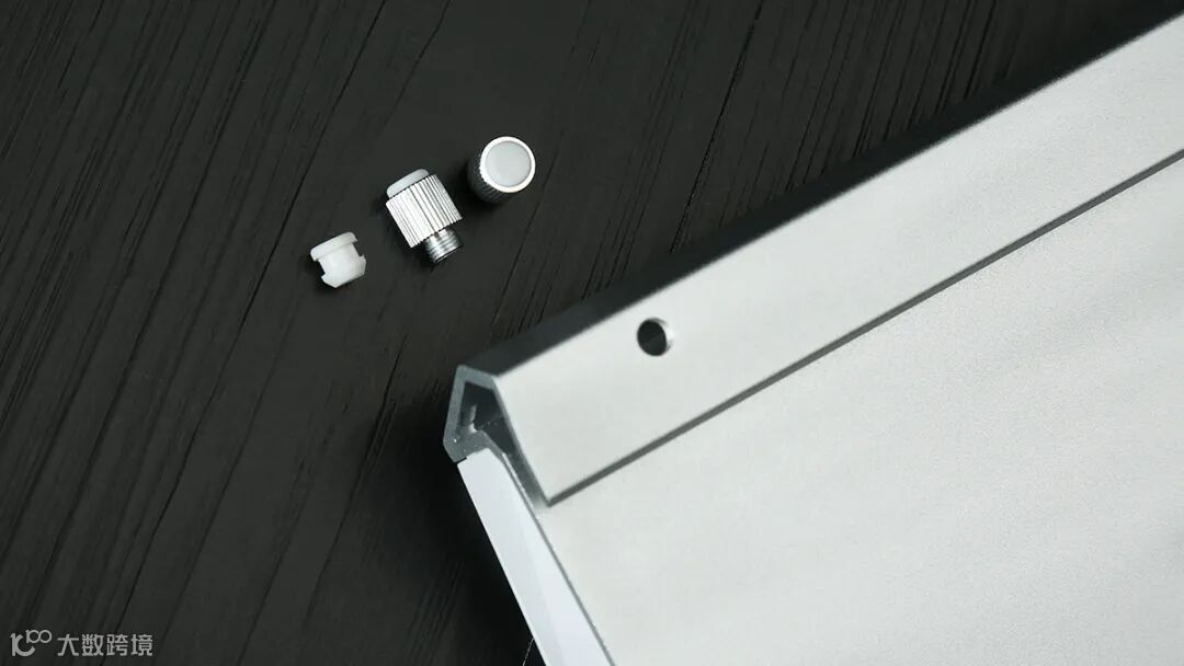 键盘背部的设计虽然十分简约,但它却是一体成型,并采用阳极氧化工艺的铝制底壳,触感和耐磨度都非常好。底部的橡胶防滑贴共有6块,体积都很小,而左右两侧的防滑贴还可与附带的脚撑进行替换,以便使键盘的整体坡度再加高一点,好满足不同使用习惯的玩家。
