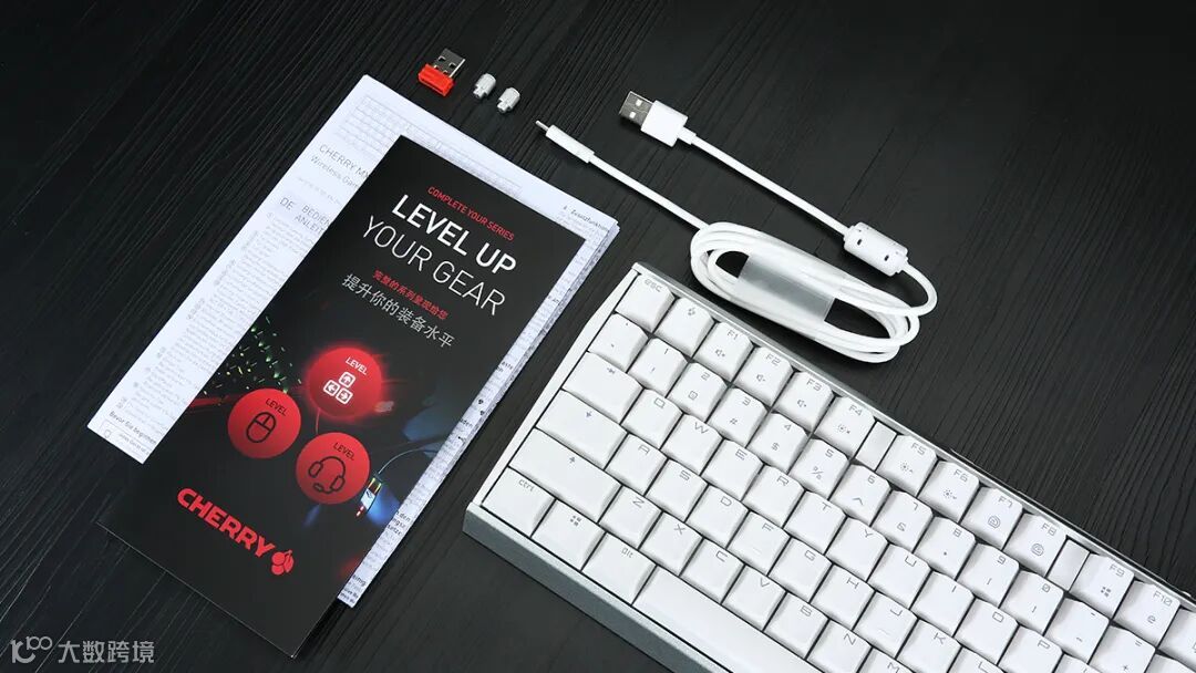键盘的附件依然中规中矩,一根Type-C接口的连接线、一个2.4Ghz接收器、一对可替换小脚撑、一本说明书和一张产品介绍卡。