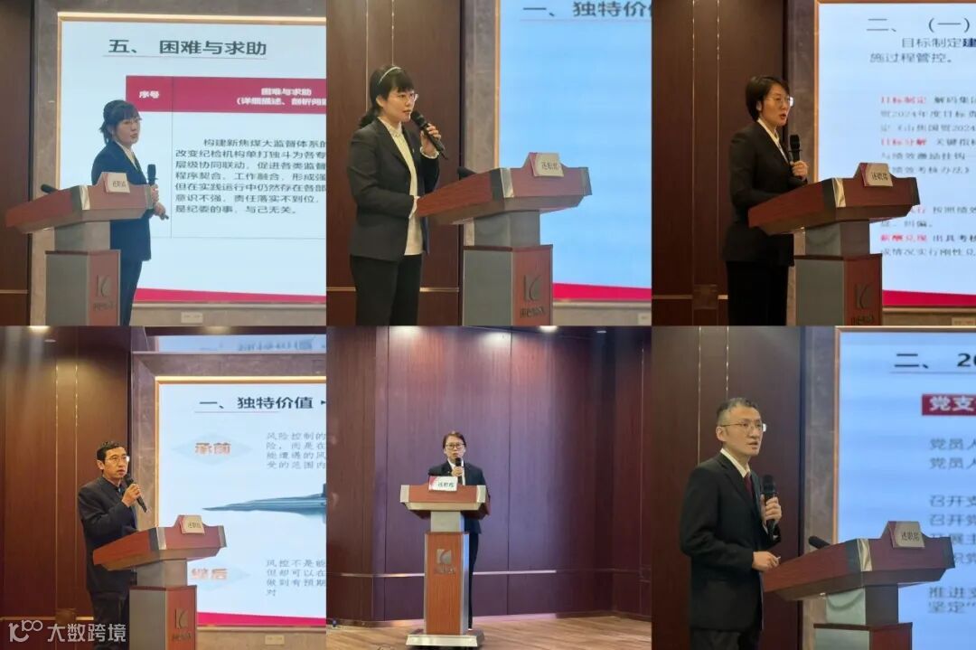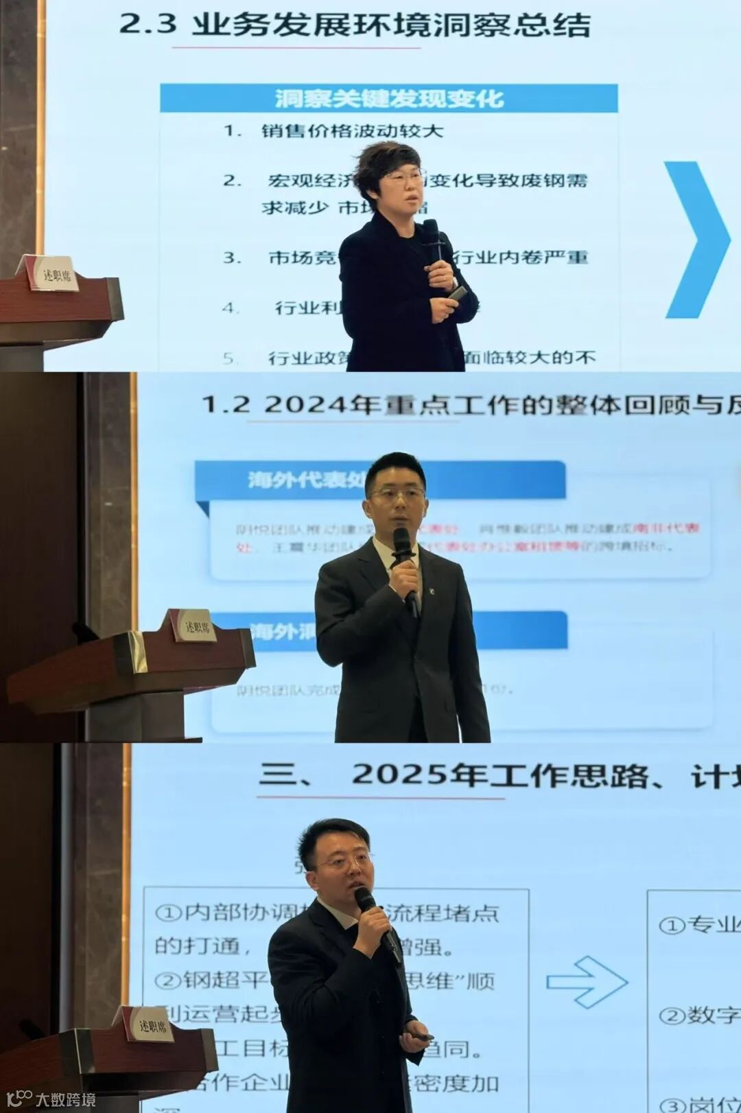 述职会上,三个业务板块、六个业务公司和六个职能部门的负责人依次进行了述职汇报。他们围绕部门独特价值和履职实际等内容,详细汇报了全年关键指标和重点工作完成情况,取得的成绩以及面临的挑战,同时规划了2025年工作目标。