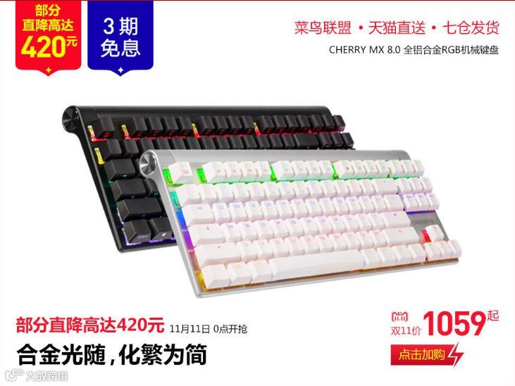 CHERRY更是适时推出了满足消费者需求的多轴体版本的MX 8.0,其中RGB版本更是令众多粉丝爱不释手。相比今年417生日价,MX 8.0RGB版本仅享受了五元优惠券的待遇,为了弥补更多粉丝的遗憾,本次双十一活动价直接从五元优惠券提升至百元优惠券。不知道这次的降价有没有让你们心动呢?