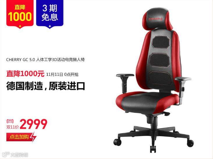 CHERRY 在今年6月更是发布了Gaming Chair 5.0电竞椅(简称GC 5.0),GC 5.0采用人体工程学设计,更是拥有自适应角度支撑脊柱,提高座椅舒适度,可实现高自由度动态坐姿的Sitness专利技术。GC 5.0自发售以来很多用户好评如潮,在今年的双十一活动中,GC 5.0更是迎来了一千元的大降价,降价幅度超乎想象!届时将会有更多用户能够得到GC 5.0所带来的舒适体验。