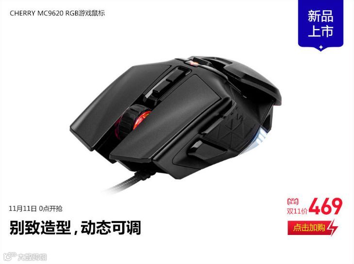 今年双十一活动中还为大家带来了期盼已久的“角色”,就是在417发布会所提及到的CHERRY MC 9620游戏鼠标!MC 9620鼠标是CHERRY发布的首款游戏鼠标,拥有九键编程、自定义设置宏、创新LOGO映射和可伸缩调节掌托等优点。让用户在激烈战斗时还可以秀出精彩操作。本次鼠标虽然属于新品发售,但依旧为大家带来了五十元优惠券。还在等什么,赶紧加入购物车吧!