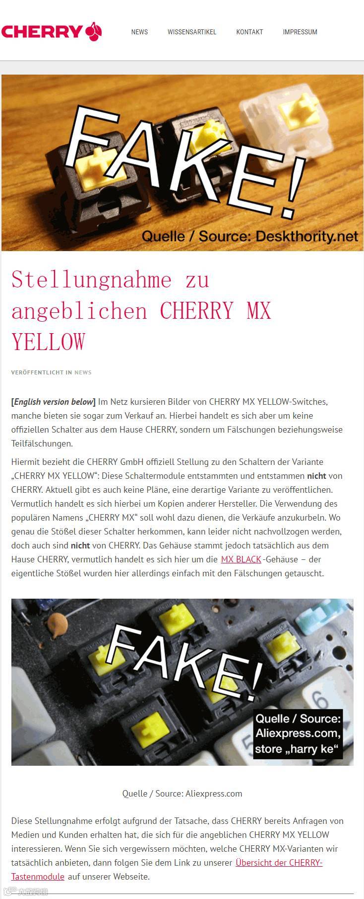 以上观点基于CHERRY近期收到许多媒体和用户关于“黄轴传闻”的咨询,如果您想了解CHERRY轴的官方信息请认准以下链接