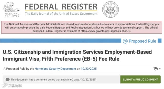 2025年10月23日,美国国土安全部(DHS)在《联邦公报》公布EB-5投资移民收费拟议规则全线“大跳水”,多项费用最高降幅达61%,为投资人送来真金白银的重磅红利。