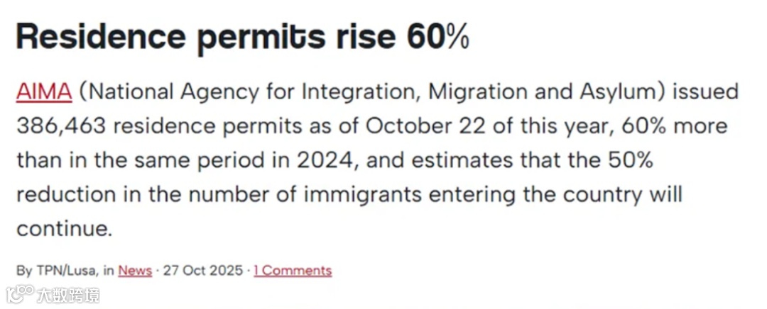 官方数据显示,截至2025年10月,葡萄牙年内已签发38.6万份居留许可,2024年同期增长60%。而投资类居留(黄金签证)2024年中国籍仍以296份获批数位列全球第二。