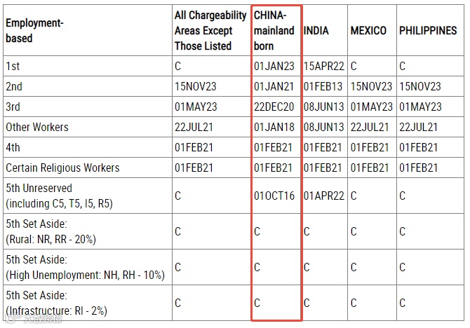 EB-1:无变化,停留在2023年1月1日